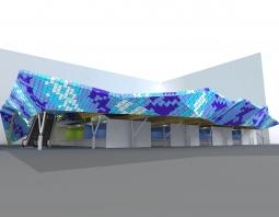 Las cabeceras de estos módulos, suponen la fachada principal. Está completamente abierta en horario comercial