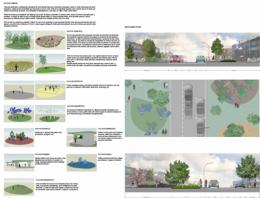 -El primero aprovecha su gran anchura para crear un eje que vuelva a unir las dos partes fracturadas del pueblo, reforzando así las relaciones urbanas, con el beneficio que esta anchura conlleva (más de 30 metros) para que se desarrollen nuevos usos.