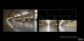 | Los espacios dónde se ubica el parking son el interior de una manzana de bloques residenciales de diferente tipo, entre medianeras unos, aislados otros, lo que hace que aparezcan una serie de accesos y visuales entre ellos que se han tenido en cuenta en la propuesta. | |